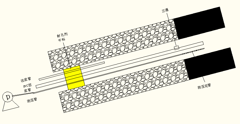 用注漿泵將調(diào)配好的封孔劑漿液(封孔劑與水質(zhì)量比1:1)注入孔內(nèi),直至漿液到達孔口處時停止。
